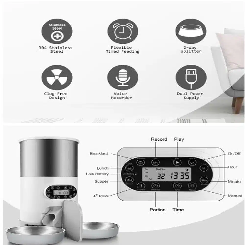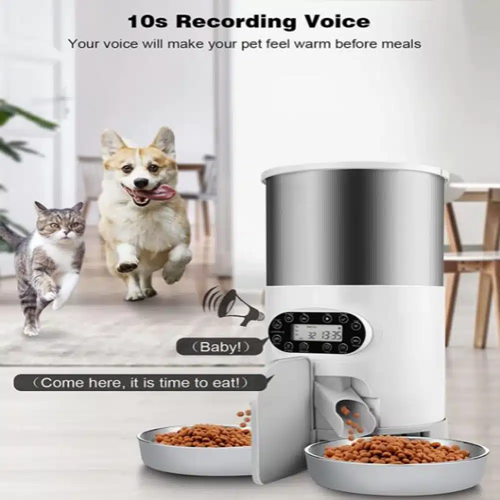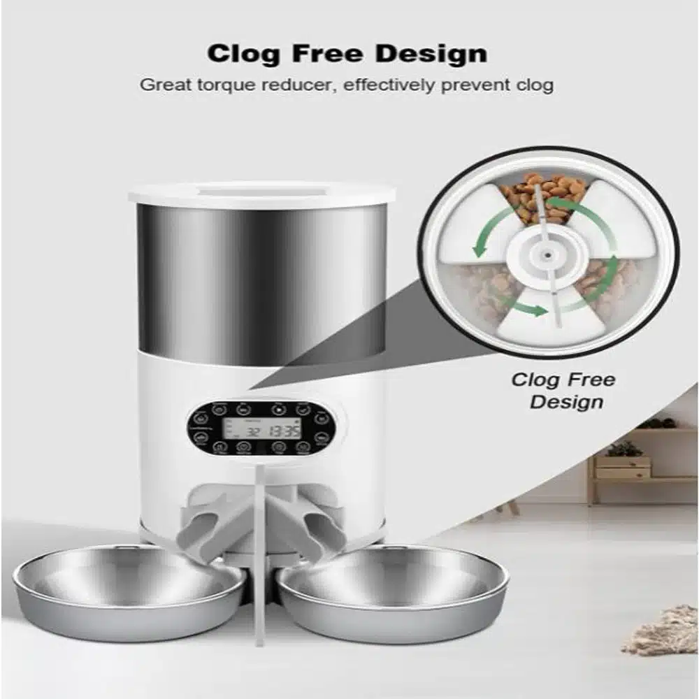 - 4.5L double meal feeding, the weight of food dropped on 2 plates is different:Â Can feed 2 pets