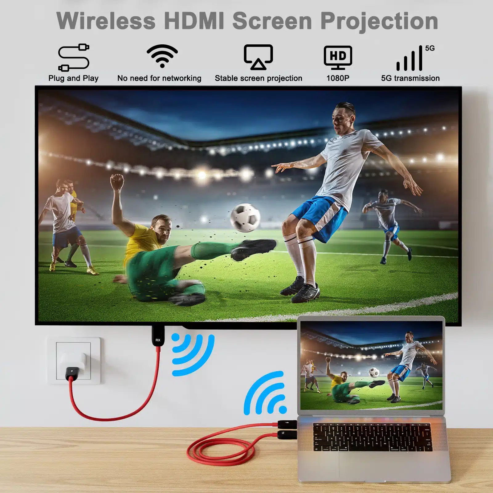 Supports TVs, projectors and monitors with HDMI.